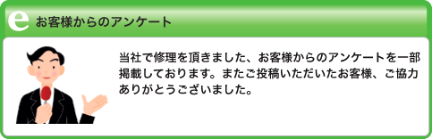 いつもありがとうございます。今回の修理も大変良く満足しています。